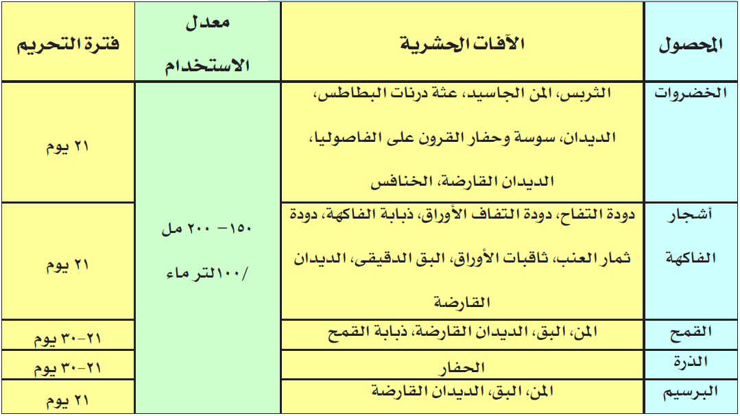 > لا يستخدم على نباتات العائلة الصليبية مثل الملفوف والقرنبيط.