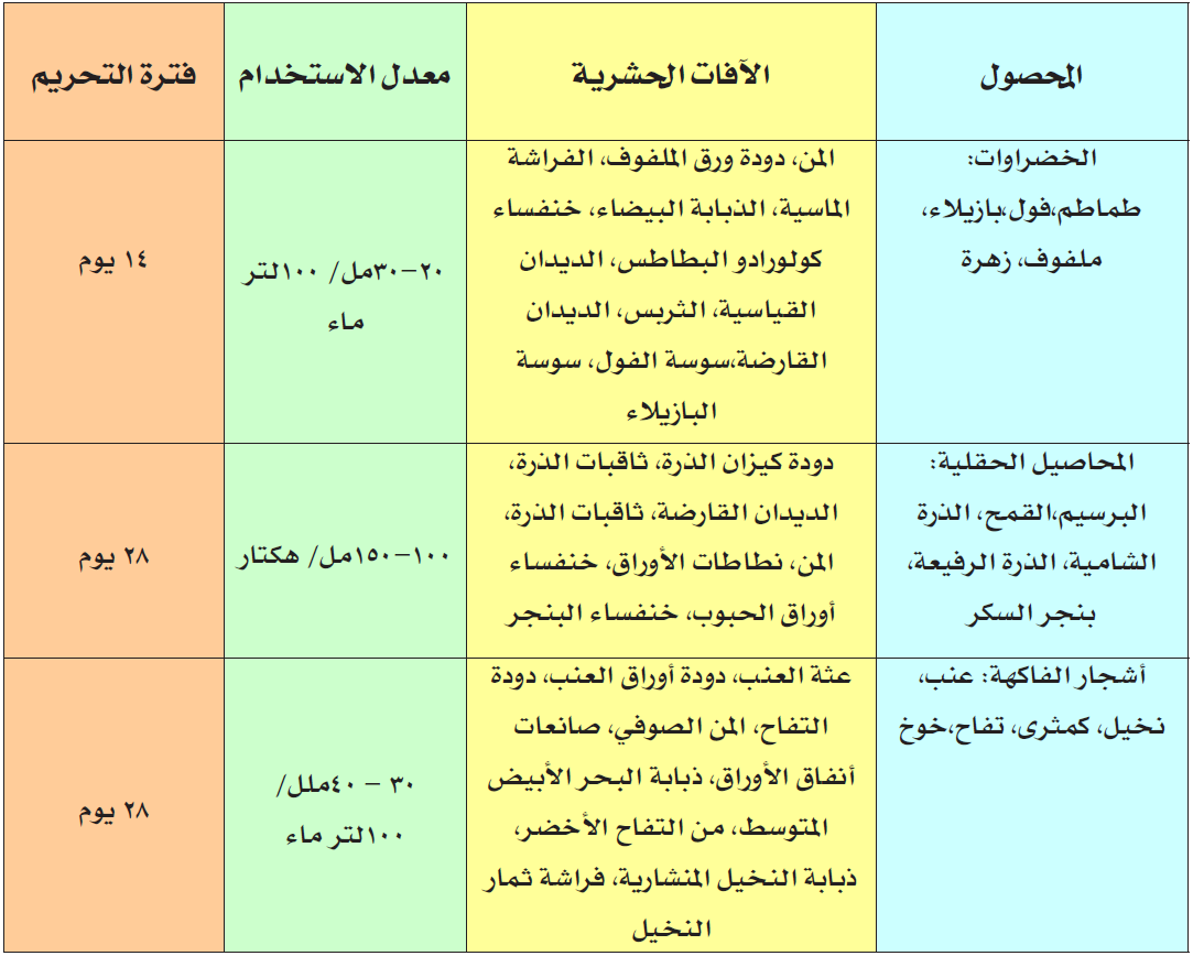 لا يسمح برعي الماشية قبل مرور 12 يوم على موعد الرش.