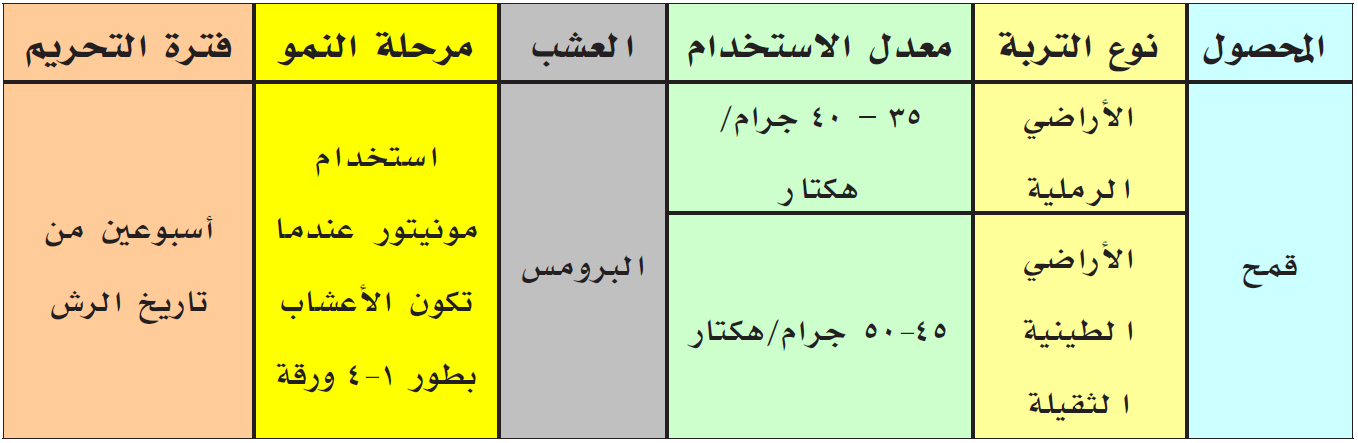 - يفضل استخدامه في دورة قمح – قمح ، وينصح بزراعة أي محصول آخر بعد 8 أشهر (عدا القمح).