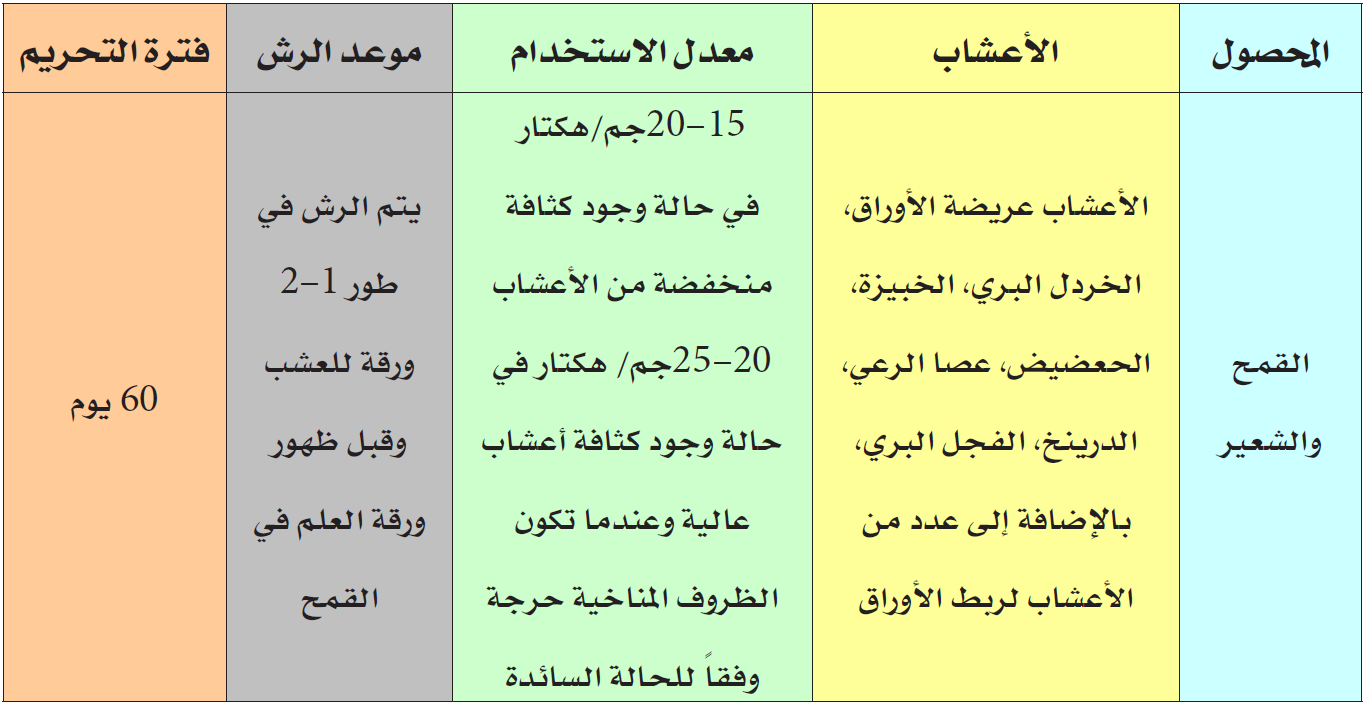 تختلف أصناف القمح والشعير في مستوى حساسيتها ويمكن إجراء رش محدود على الصنف قبل الاستخدام الحقلي الموسم.