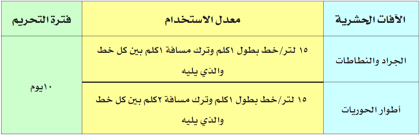 - لا يسمح للحيوانات بالرعي إلا بعد مرور 10 أيام على الرش.