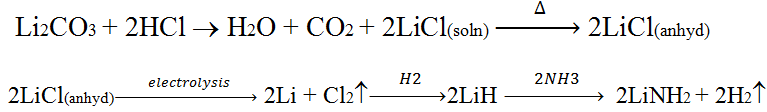 تنض سلفات الليثيوم الذؤوبة بالماء وتفاعل مع كربونات الصوديوم لتعطي كربونات الليثيوم . تشتق املاح مختلفة من الكربونات كما يلي :
