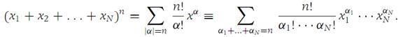 The proof is easily established by induction on n, and we leave the details to the reader. The Multinomial theorem, an extension to several variables of the binomial theorem, is essential for the development of the Taylor expansion for functions of several variables. We state the result without proof, although the formula is not difficult to establish by induction. (Fix the integer n and use induction on N.)