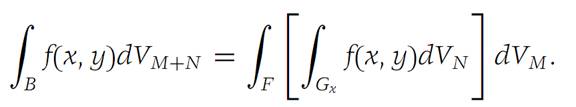 Suppose that F is a domain in RM and that Gx is a domain in RN for each x ∈ F. Define B ={(x, y): x ∈ F, y ∈ Gx for each such x}. Let f :B → R1 be integrable over B and suppose that f is integrable over Gx for each x ∈ F.