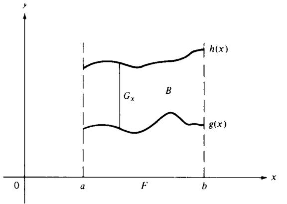 Figure 1.1 shows a simple illustration of the theorem for functions on R2. Let B ={(x, y) : a ≤ x ≤ b, g(x) ≤ y ≤ h(x)}. Then F ={x : a ≤ x ≤ b} and Gx ={y : g(x) ≤ y ≤ h(x) for each x}. The theorem states that