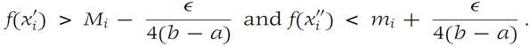 Let Mi and mi denote the least upper bound and greatest lower bound, respectively, of f in Ii . Then there are points x/iand x//I such that