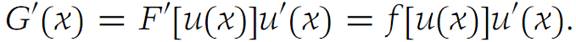 Defining G(x) = F[u(x)], we employ the Chain rule to obtain