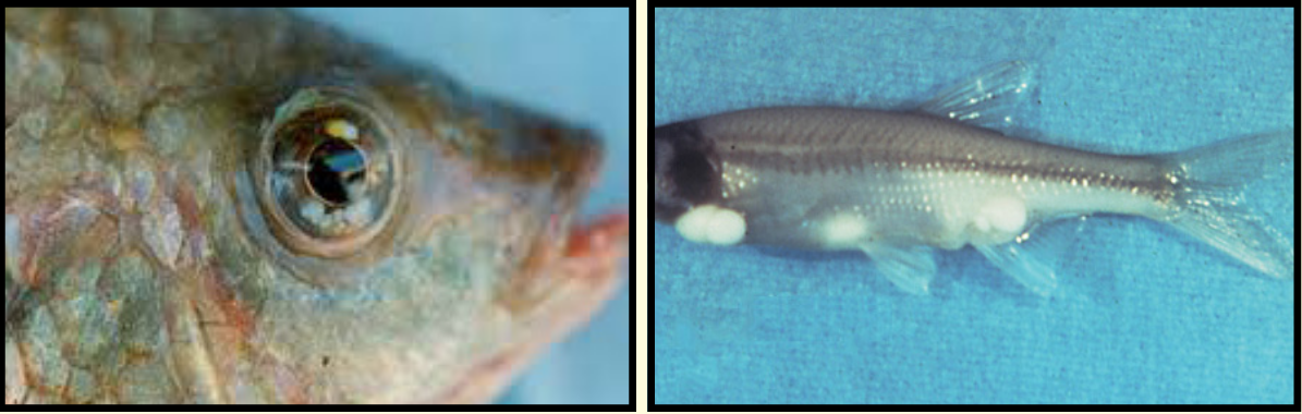 وهذا الطفيل يصيب بكثرة زريعة الأسماك، حيث يتحوصل في قرنية العين والشبكية متسببا في عتامة العين والعمى الكامل وهذا ما يؤدى الى عدم رؤية الزريعة لتناول غذائها وإصابتها بالهزال وغالبا ما ينتهى الأمر بنفوق الأسماك والتي قد تصل الى معدلات عالية جدا. وبذلك يتسبب في خسائر اقتصادية عالية.