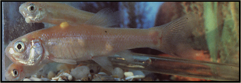 2. ظهور الأنزفة الخطية نتيجة لتحرك الطفيل حرا على جلد الأسماك.