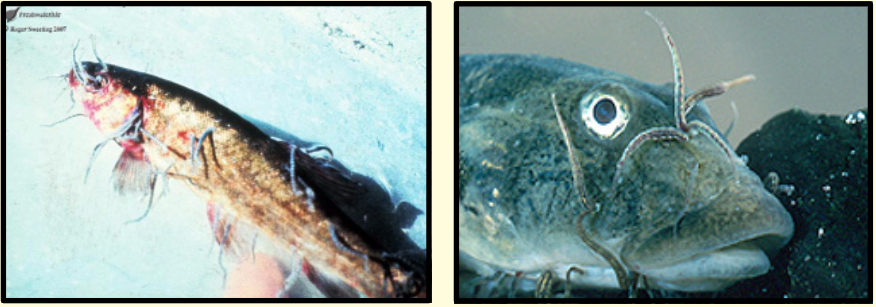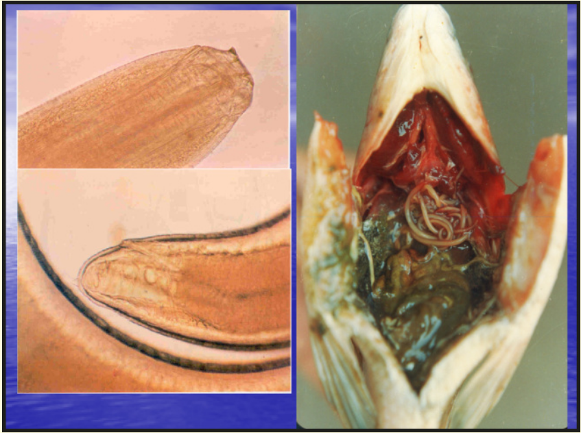 - عندما تكون كبيرة في الحجم (Macroscopic) تقلل الجودة والقيمة التسويقية للأسماك.