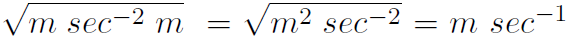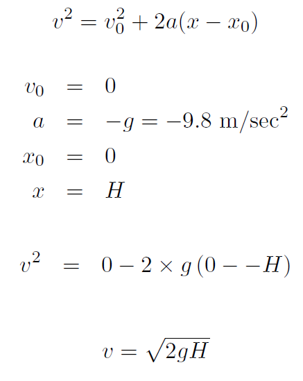 Check units: The units of g are m sec-2 and H is in m. Thus