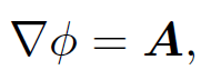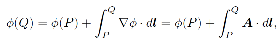 where A(r) is a vector field. Note that we need ∇ ˄ A = 0 for self consistency, since the curl of a gradient is automatically zero. The above equation completely specifies ϕ once we are given the value of the field at a single point, P say. Thus,