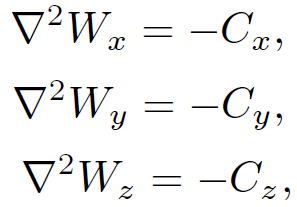 So, we have transformed our problem into four differential equations, Eq. (1.8) and Eqs. (1.10), which we need to solve. Let us look at these equations. We immediately notice that they all have exactly the same form. In fact, they are all versions of Poisson's equation. We can now make use of a principle made famous by Richard P. Feynman: ''the same equations have the same solutions." Recall that earlier on we came across the following equation: