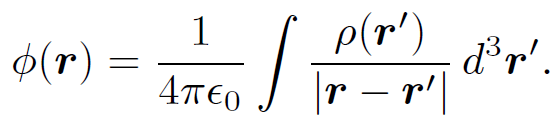 where ϕ is the electrostatic potential and ρ is the charge density. We proved that the solution to this equation, with the boundary condition that ϕ goes to zero at infinity, is