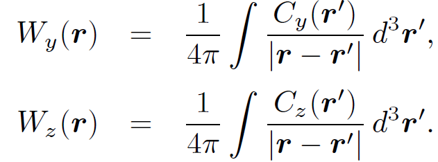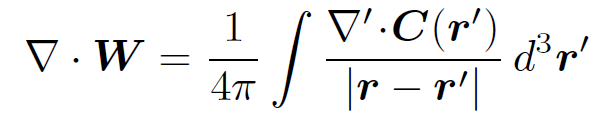 where i denotes x, y, or z, which are bounded at infinity. If there are then we are in trouble, because we can take our solution and add to it an arbitrary amount of a vector field with zero divergence and zero curl and thereby obtain another solution which also satisfies physical boundary conditions. This would imply that our solution is not unique. In other words, it is not possible to unambiguously reconstruct a vector field given its divergence, its curl, and physical boundary conditions. Fortunately, the equation