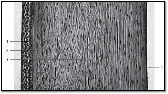 3 Corneal stroma, substantia propria corneae with fibrocytes (keratinocytes)