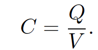 It is conventional to measure the capacity of a conductor, or set of conductors, to store charge but generate small electric fields in terms of a parameter called the ''capacitance." This is usually denoted C. The capacitance of a charge storing device is simply the ratio of the charge stored to the potential difference generated by the charge. Thus,