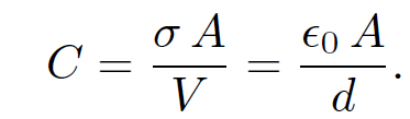 Clearly, a good charge storing device has a high capacitance. Incidentally, capacitance is measured in coulombs per volt, or farads. This is a rather unwieldy unit since good capacitors typically have capacitances which are only about one millionth of a farad. For a parallel plate capacitor it is clear that