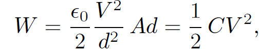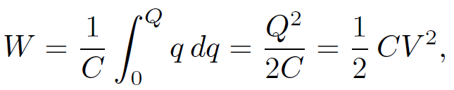 where use has been made of Eq. (1.5). The energy stored in the capacitor is the same as the work required to charge up the capacitor. Thus,