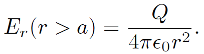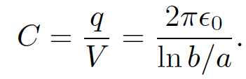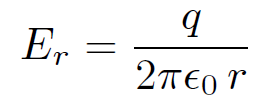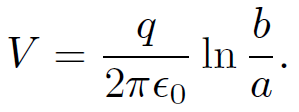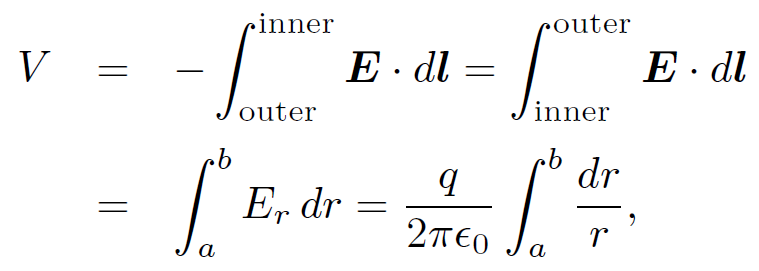 for a < r < b. It is fairly obvious that Er = 0 if r is not in the range a to b. The potential difference between the inner and outer cylinders is