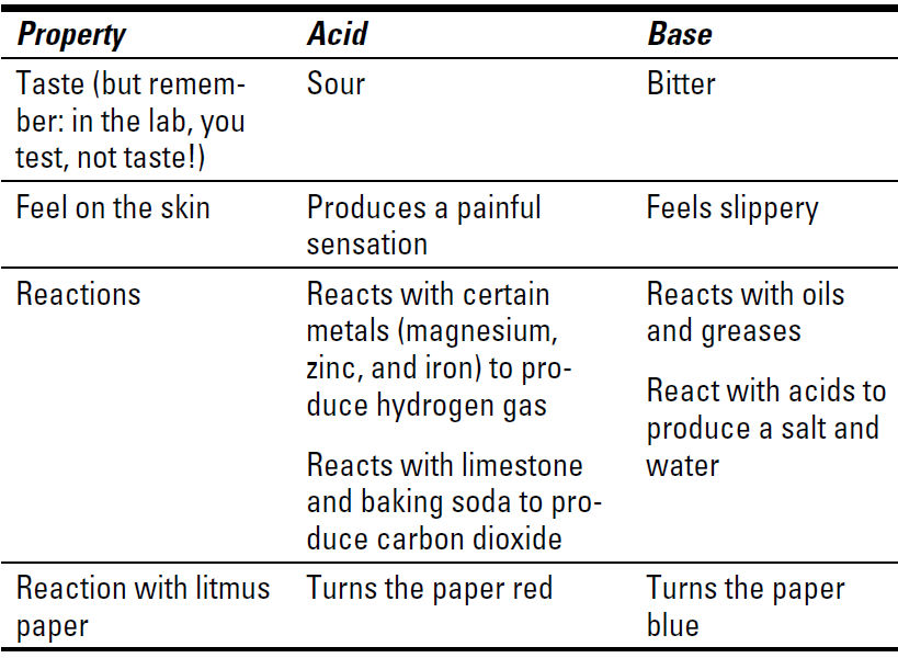 Table 1-1 lists the properties of acids and bases that you can observe in the world around you.