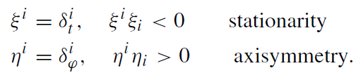 potential W depend on r and z alone, i.e. the metric (1.1) allows an Abelian group of motions G2 with the generators (Killing vectors) ξi, ηi ,