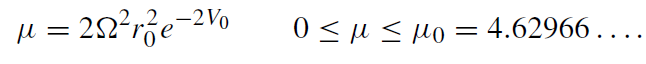 Figure 1.4. In the limit μ = μ0, the ‘disk world’ (left-hand branch) and the ‘world of the extreme Kerr black hole’ (right-hand branch) are separated from each other. The point labelled ∞ on the abscissa corresponds to a coordinate radius r = 1/2Ω. Points of the ‘Kerr world’ (right-hand branch) are at infinite distance from the disk (in the left-hand branch).