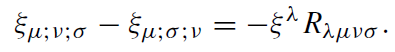 The commutator of two covariant derivatives turns out to be (Ricci identity)