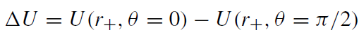 The potential difference between the (north) pole of the black hole and its equator, as measured by an stationary observer vμ ∼ ξμ(t )+ ΩFξμ(φ), is