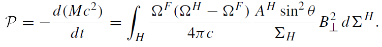 The power is maximal when ΩF = ΩH /2. Macdonald and Thorne demonstrated that this condition is likely to be implemented in the described model.