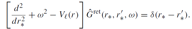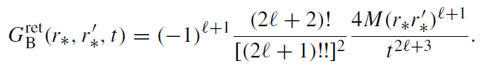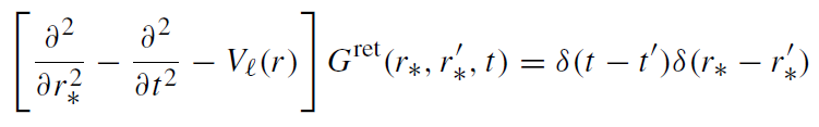 Time evolution of the scalar massless field around a non-rotating black hole for given initial data and source jℓ can be easily obtained by using a retarded Green’s function Gret. The retarded Green's function is a solution of the equation