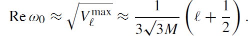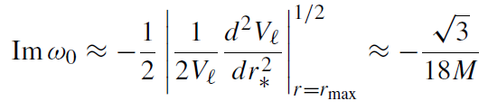 Interestingly, similar approximations follow from a different approach. Consider a congruence of null rays circling the black hole in the unstable photon orbit at r = 3M. The fundamental mode frequency then follows if the beam contains ℓ cycles [24]. The damping rate of the mode can be inferred from the decay rate of the congruence if the null orbit is slightly perturbed [25].