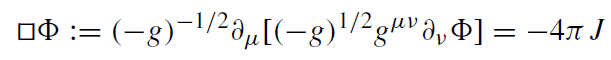 where g is the determinant of the metric gμν and J a scalar charge density.