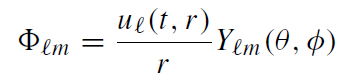 where Yℓm(θ, φ) are the spherical harmonics. The functions uℓm obey the two dimensional wave equation
