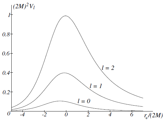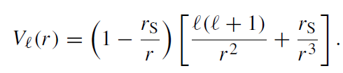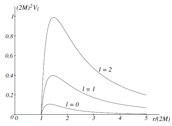 The effective potential for different values of ℓ is shown in figures 1.1 and 1.2. The maximum of the effective potential Vℓ(r ) is roughly at the location of the unstable circular photon orbit (r = 3M).