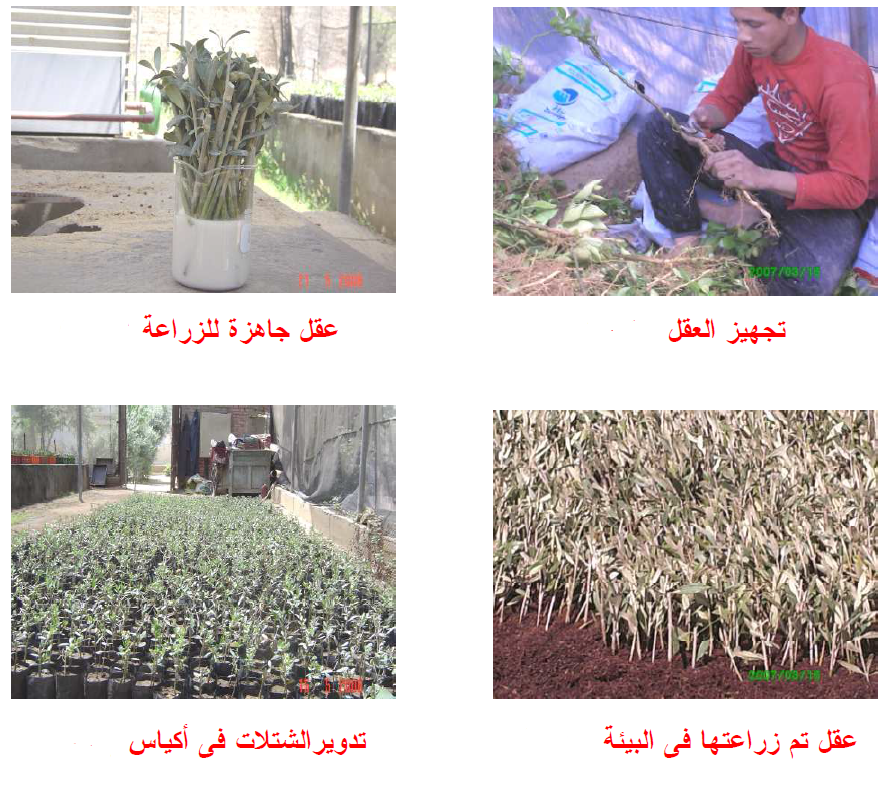 o يؤدى ذلك إلى زيادة نسبة التجذير. وتجهز العقل بسمك ٢-٤ سم وطول حوالي ٢٥-٣٠ سم.