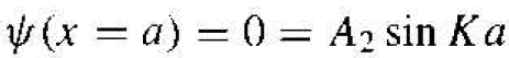 Applying the boundary condition at x = 0, we must have that A1 = 0. At x = a, we have