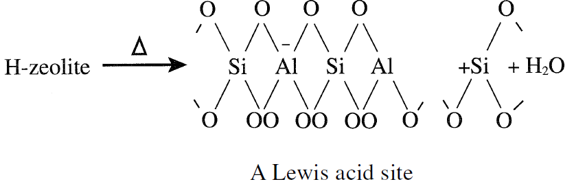 Bronsted acid sites in HY-zeolites mainly originate from protons that neutralize the alumina tetrahedra. When HY-zeolite (X- and Y-zeolites are cracking catalysts ) is heated to temperatures in the range of 400–500°C, Lewis acid sites are formed.