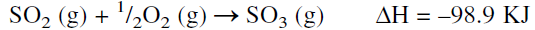 The reaction occurs at about 450°C, increasing the rate at the expense of a higher conversion. To increase the yield of sulfur trioxide, more than one conversion stage (normally three stages) is used with cooling between the stages to offset the exothermic reaction heat. Absorption of SO3 from the gas mixture exiting from the reactor favors the conversion of SO2. The absorbers contain sulfuric acid of 98% concentration which dissolves sulfur trioxide. The unreacted sulfur dioxide and oxygen are recycled to the reactor. The absorption reaction is exothermic, and special coolers are used to cool the acid: