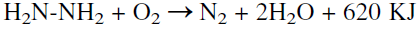 A colorless, fuming liquid miscible with water, hydrazine (diazine) is a weak base but a strong reducing agent. Hydrazine is used as a rocket fuel because its combustion is highly exothermic and produces 620 KJ/mol: