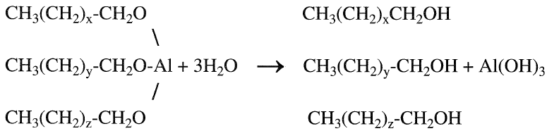 The final step is the hydrolysis of the trialkoxides with water to the corresponding even-numbered primary alcohols. Alumina is coproduced and is characterized by its high activity and purity:
