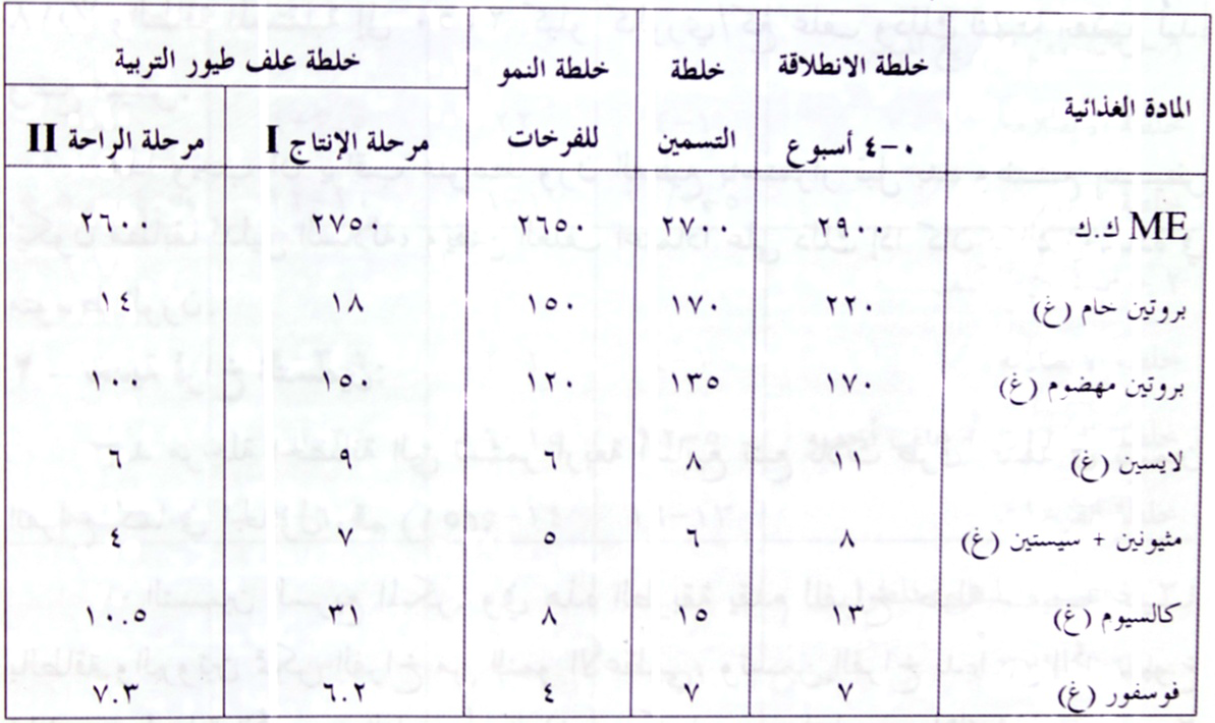 وتقدم الخلطتين I و II في اثناء فترة القلش مناصفة وذلك لتأمين متطلبات نمو الريش من البروتين والطاقة.