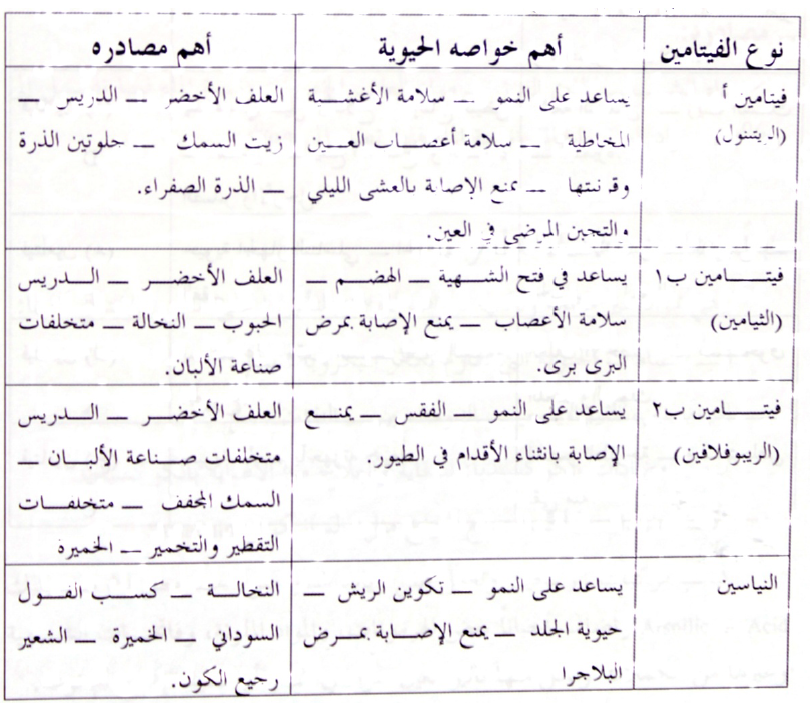 « أنواعها - ترتيبها ـ مصادرها ـ وظائفها الحيوية»