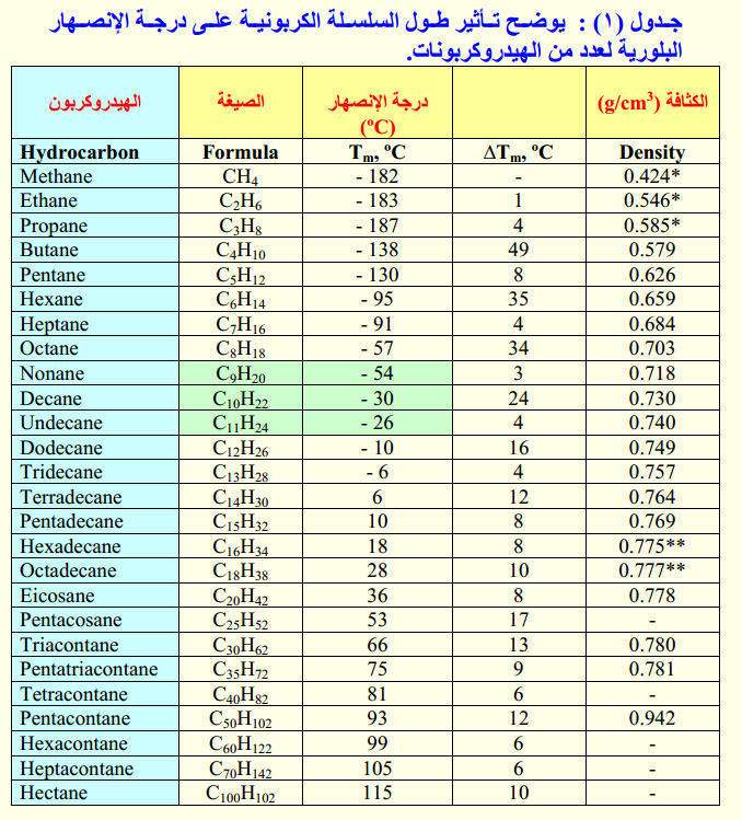 * دراسة الانصهار تزداد باستمرار بزيادة الوزن الجزيئي.