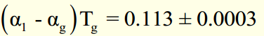 α g المعامل الحجمي لمعامل التمدد الحراري تحت درجة الانتقال الزجاجي.