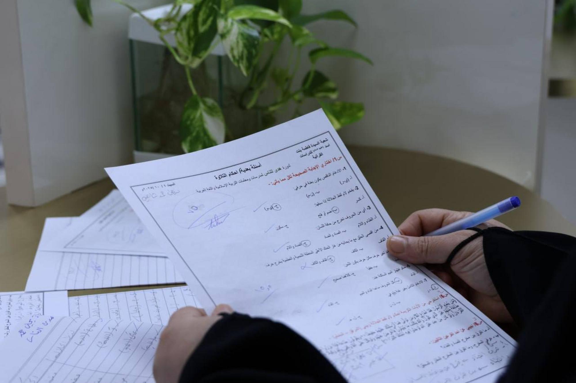 أجرت شعبة فاطمة بنت أسد (عليها السلام) للدراسات القرآنية التابعة لمكتب المتولي الشرعي للشؤون النسوية في العتبة العباسية المقدسة، الاختبارات النهائية للمشاركات في دورة (هدى للناس) المخصصة لمعلمات ومدرسات التربية الإسلامية واللغة العربية. وتنوعت أسئلة الاختبار بين أحكام التلاوة ومهارات القراءة الصحيحة، لتكون مرآة مما اكتسبته المشاركات خلال أيام الدورة التي أقيمت في العطلة الصيفية من دروس وتجسيدًا لجهود الملاكات التدريسية في ترسيخ الأداء السليم وفق المنهج القرآني القويم. وبعد انتهاء الاختبارات، باشرت اللجنة المختصة أعمال التصحيح والتدقيق، تمهيدًا لإعلان النتائج وتكريم المتفوقات تقديرًا لجهودهن. من جانبِهن عبرت التدريسيات المشاركات عن شكرهن وامتنانهن لما تم تقديمه خلال الدورة، مؤكدات أنها كانت تجربة ناجحة أسهمت بشكل كبير في تعزيز مهاراتهن وتوسيع مداركهن العلمية والعملية.