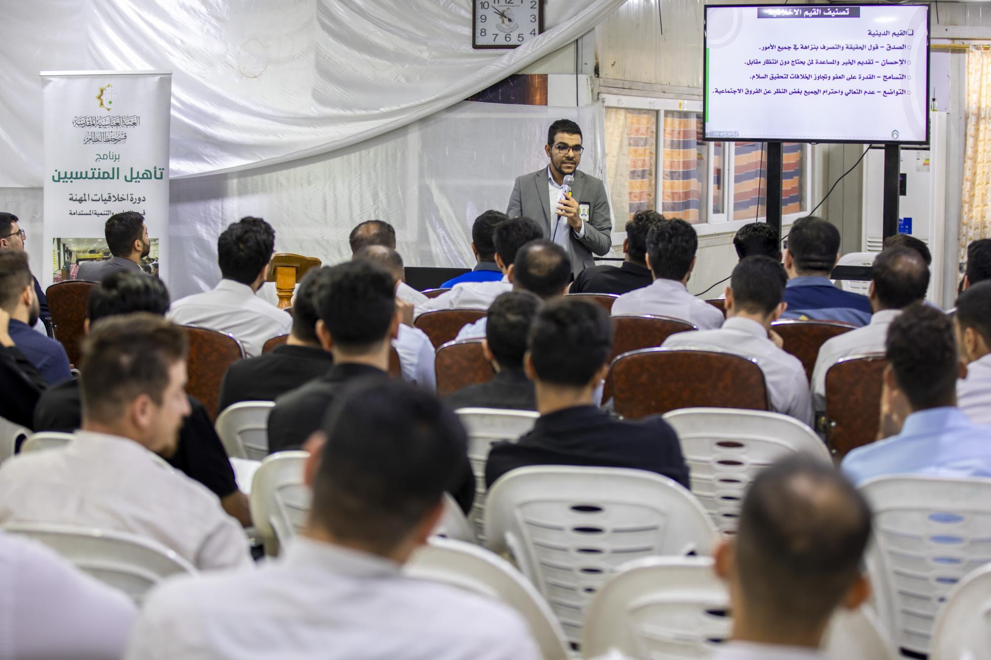 يواصل قسم التطوير والتنمية المستدامة في العتبة العبّاسية المقدّسة، تقديم دورة أخلاقيات المهنة ضمن برنامج تأهيل المنتسبين الجُدُد. وأُقِيمت الدورة في مجمّع الشيخ الكليني (قدّس سرّه) التابع للعتبة المقدّسة، وتستمرّ أربعة أيّام. وقال مدرّب الدورة السيد ضرغام الجليحاوي: إنّ "الدورة تناولت موضوعاتٍ متعدّدة، منها الأخلاق الإسلامية وأهمّيتها ومصادرها، وتصنيف القيم الأخلاقية ووسائل ترسيخها ومعوّقاتها، والتعامل مع الزائرين والمنتسبين والإدارات، وكيفيّة إنشاء منظومة القيم الأخلاقية". وأضاف، أنّ "الدورة تطرّقت إلى كيفية تشكيل السلوك الأخلاقيّ، ومواجهة الضغوط والمعوّقات في بيئة العمل، وستُختتم باختباراتٍ لقياس مدى استفادة المشاركين من محاورها".