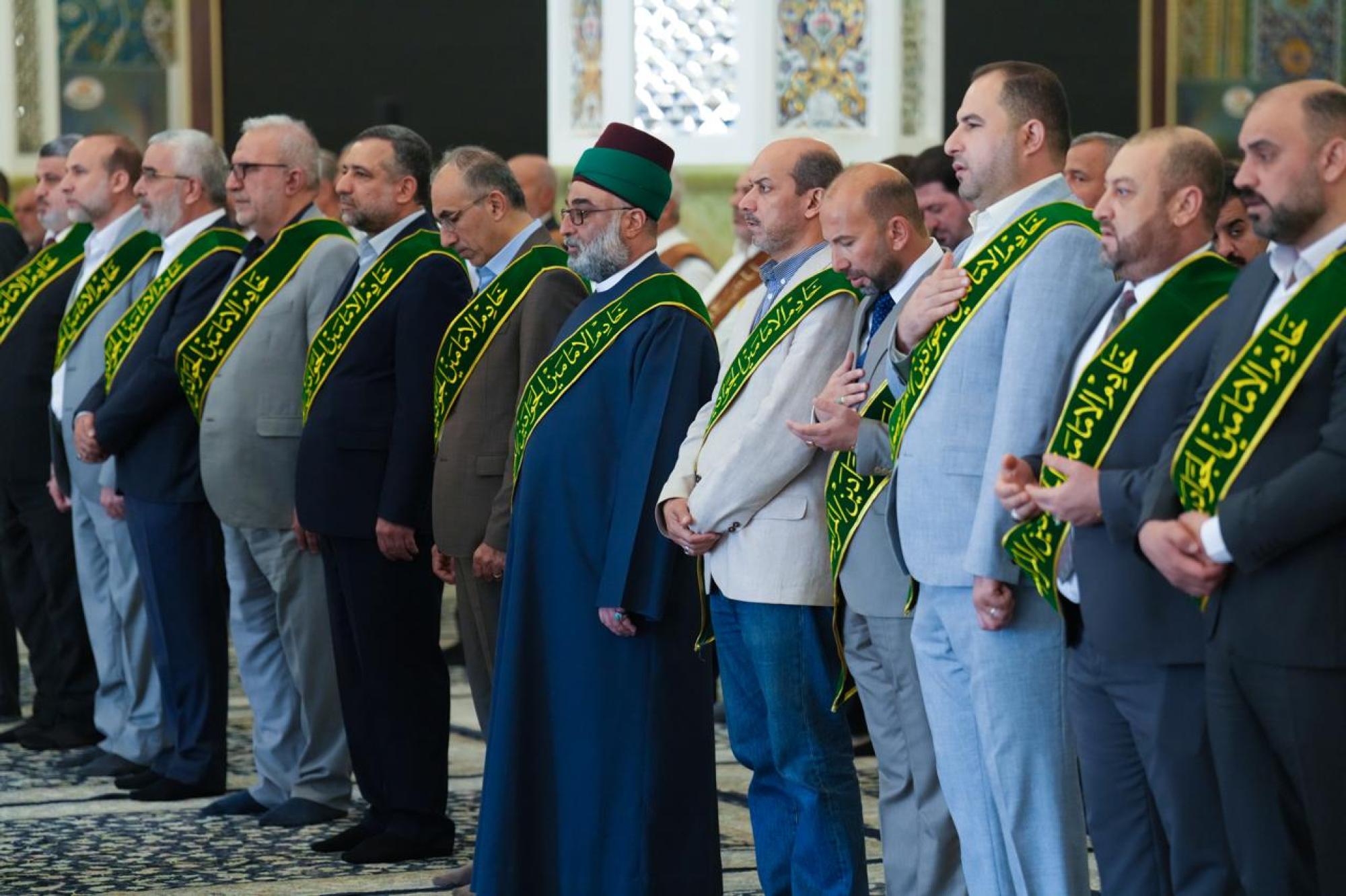 وأدّى أمناءُ العتبات المقدّسة مراسم زيارة مرقد الإمامين الكاظمين(عليهما السلام)، وشاركوا في مراسم الممارسة العبادية، داعين الله عزّ وجلّ أن ينعم العراق وشعبه بالأمن والاستقرار، وطلب التوفيق لخدمة العتبات المقدّسة في أداء مهامّهم لخدمة الزائرين والسائرين على نهج أهل البيت (عليهم السلام).