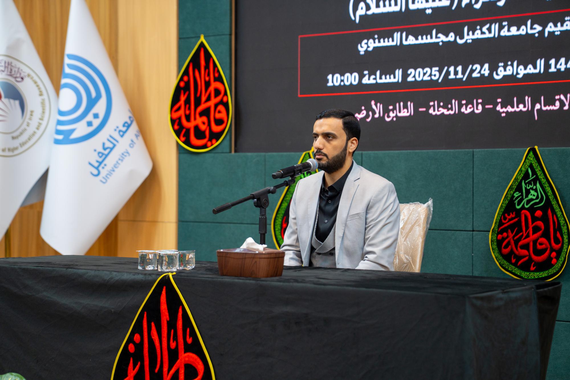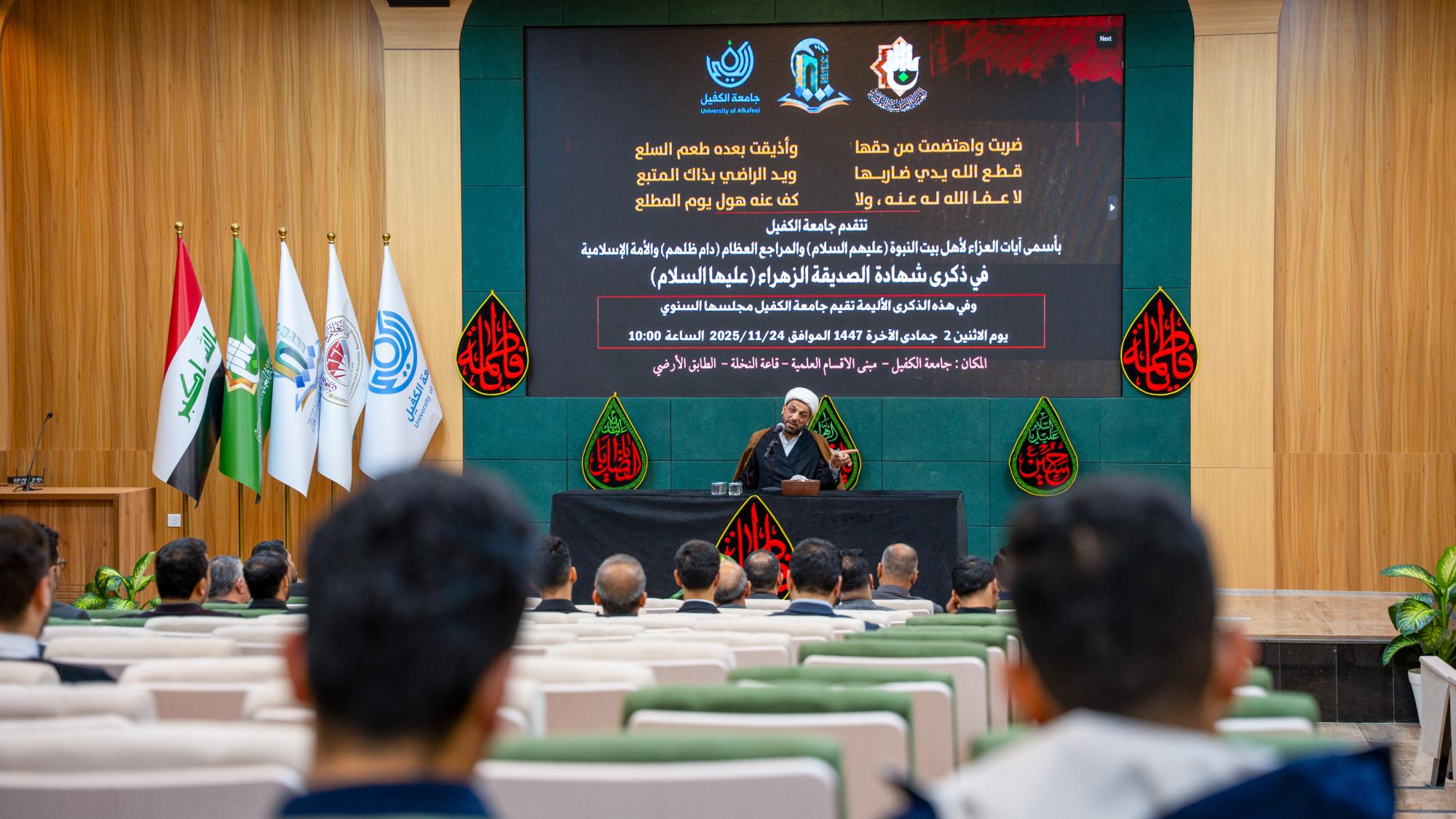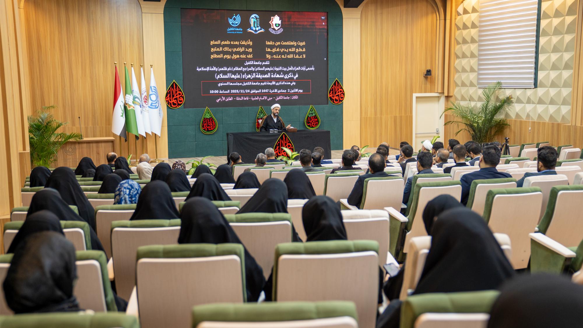 أقامت جامعة الكفيل مجلس العزاء السنوي إحياءً لذكرى شهادة السيدة فاطمة الزهراء (عليها السلام)، وفقاً للرواية الثالثة. وشهد المجلس حضور رئيس الجامعة الدكتور نورس شهيد الدهان وعمداء كلياتها وعدد من ملاكاتها التدريسية وطلبتها. واستهل المجلس بتلاوة آيات مباركات من الذكر الحكيم بصوت القارئ مهند الميالي، ومحاضرة دينية قدمها الشيخ جعفر الدجيلي مسلطا الضوء فيها على مظلومية السيدة الزهراء (عليها السلام) وأبرز محطات حياتها وما واجهته من تحديات، مؤكدًا مكانتها الروحية والتاريخية العميقة والخالدة عبر الأجيال.