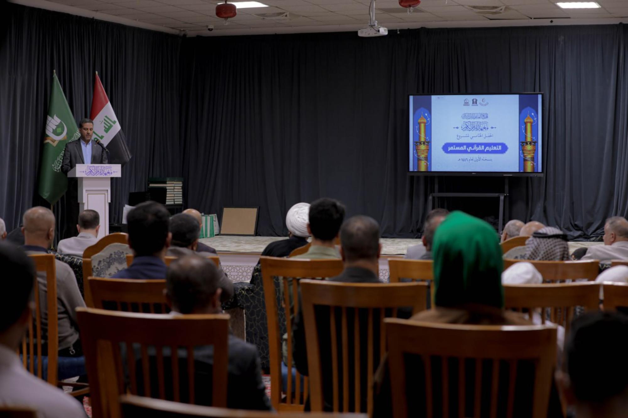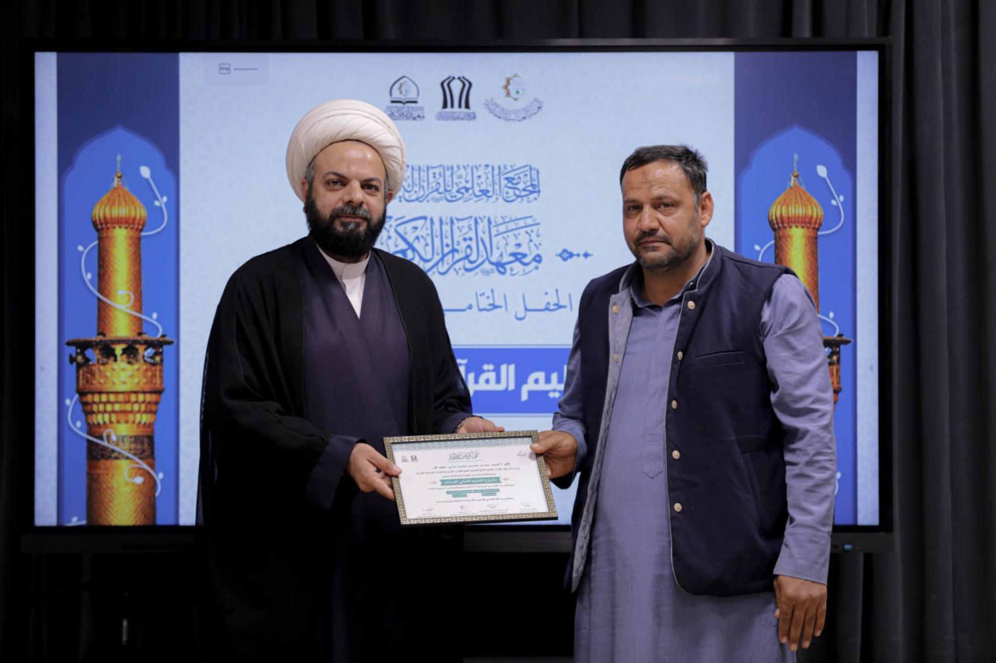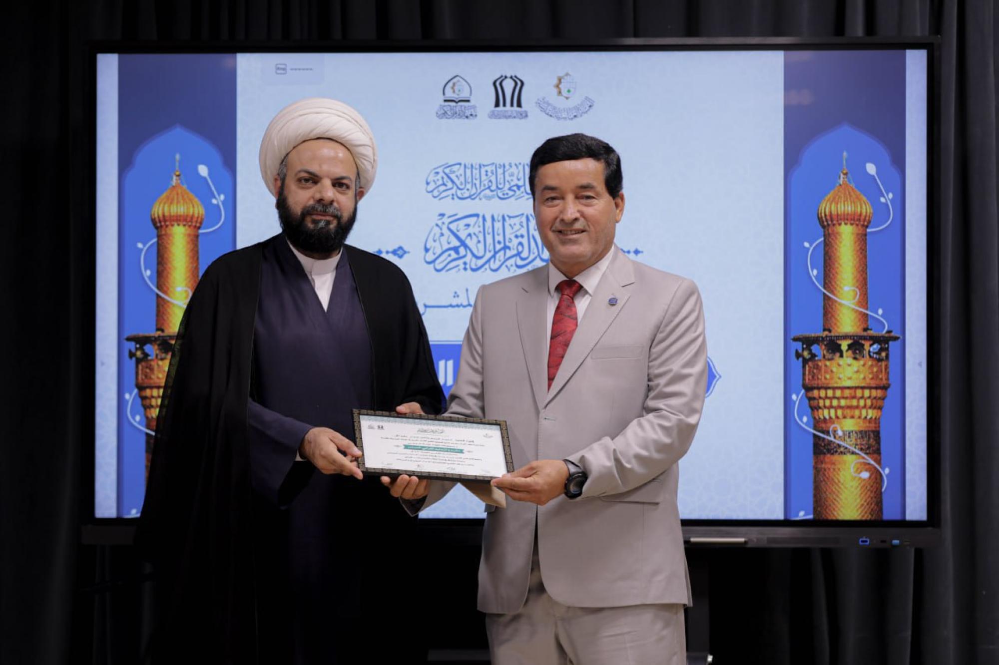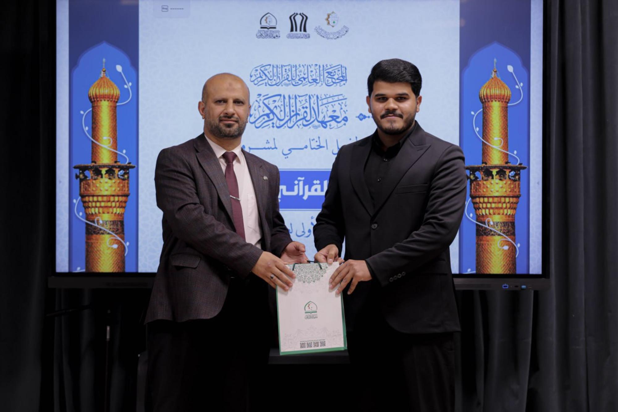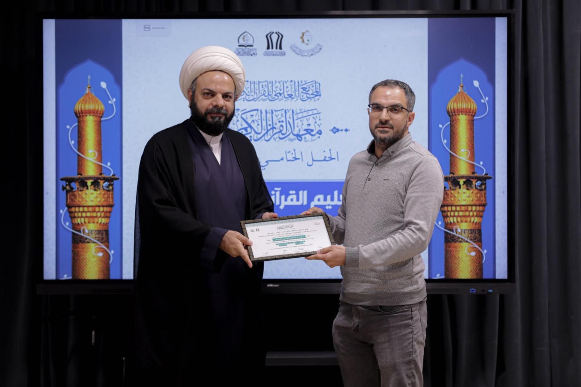 احتفى المجمع العلمي للقرآن الكريم في العتبة العباسية المقدسة، بتخرج الدفعة الثانية من طلبة مشروع التعليم القرآني المستمر بنسخته الأولى. وقال مدير معهد القرآن الكريم التابع للمجمع الشيخ جواد النصراوي، إنَّ "المعهد نظم حفلًا للاحتفاء بتخرج الدفعة الثانية من طلبة مشروع التعليم القرآني المستمر بنسخته الأولى في كربلاء المقدسة، بعد إكمال المستوى الثاني من المشروع، الذي قُدِّمت فيه دروس في المفاهيم القرآنية، والتفسير الموضوعي، وأحكام التلاوة والأداء القرآني". وأضاف، أنَّ "الحفل شهد فقرات متعددة، منها تلاوة افتتاحية قدمها القارئ الدكتور محمد الطيار، ثم جاءت بعدها كلمة المعهد ألقاها، ممثلًا عنه، أحد أساتذة المشروع الدكتور حيدر الشلاه، الذي بين فيها قابليات المشاركين، مؤكدًا "أنهم سيكونون أساتذة قرآنيين ينشرون علوم القرآن الكريم بين المجتمع، وهذا هو الهدف الأسمى الذي يسعى له المعهد". وأشار النصراوي إلى أن " الحفل تضمن كلمة للطلبة ألقاها، ممثلًا عنهم، الطالب هيثم دلول، شكر فيها العتبة العباسية المقدسة على الجهود التي قدمت لهم طوال أيام المشروع، مبينًا "أنهم تلقوا دروسًا ومفاهيم عززت لديهم المعرفة القرآنية".